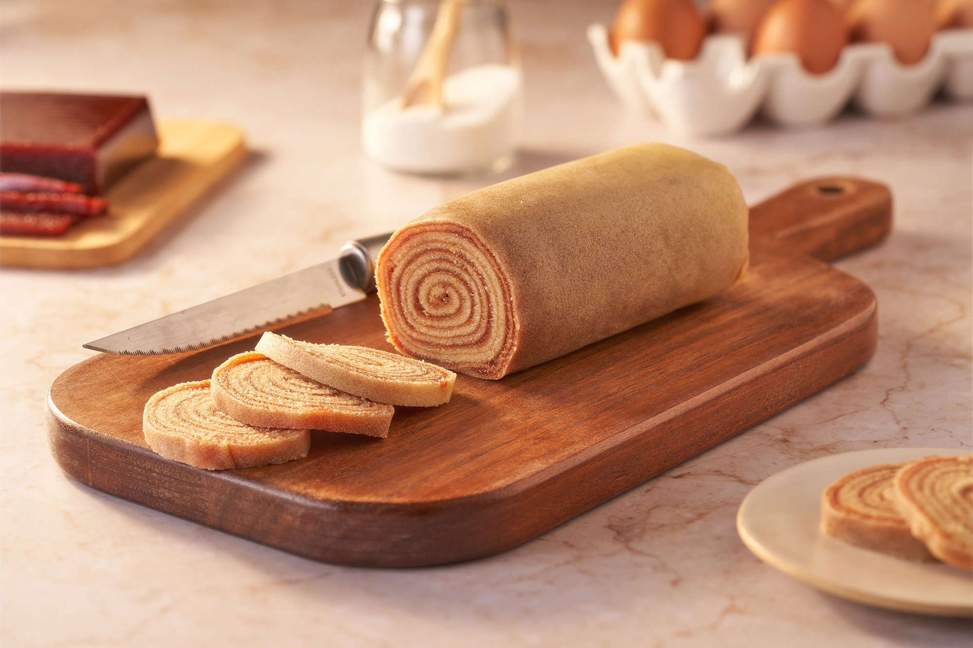 Repita o processo e a cada massa que assar, espalhe a goiabada e adicione ao rocambole anterior, formando um rolo grande.