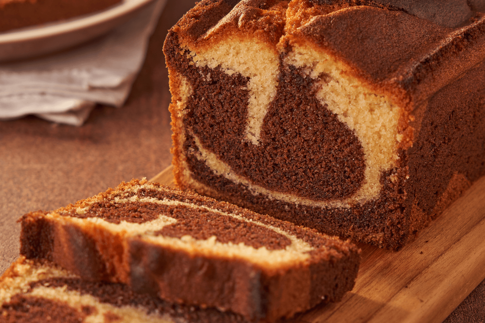 Em uma forma para bolo inglês untada, coloque um pouco de cada massa, da branca e da de chocolate, alternando cada sabor.