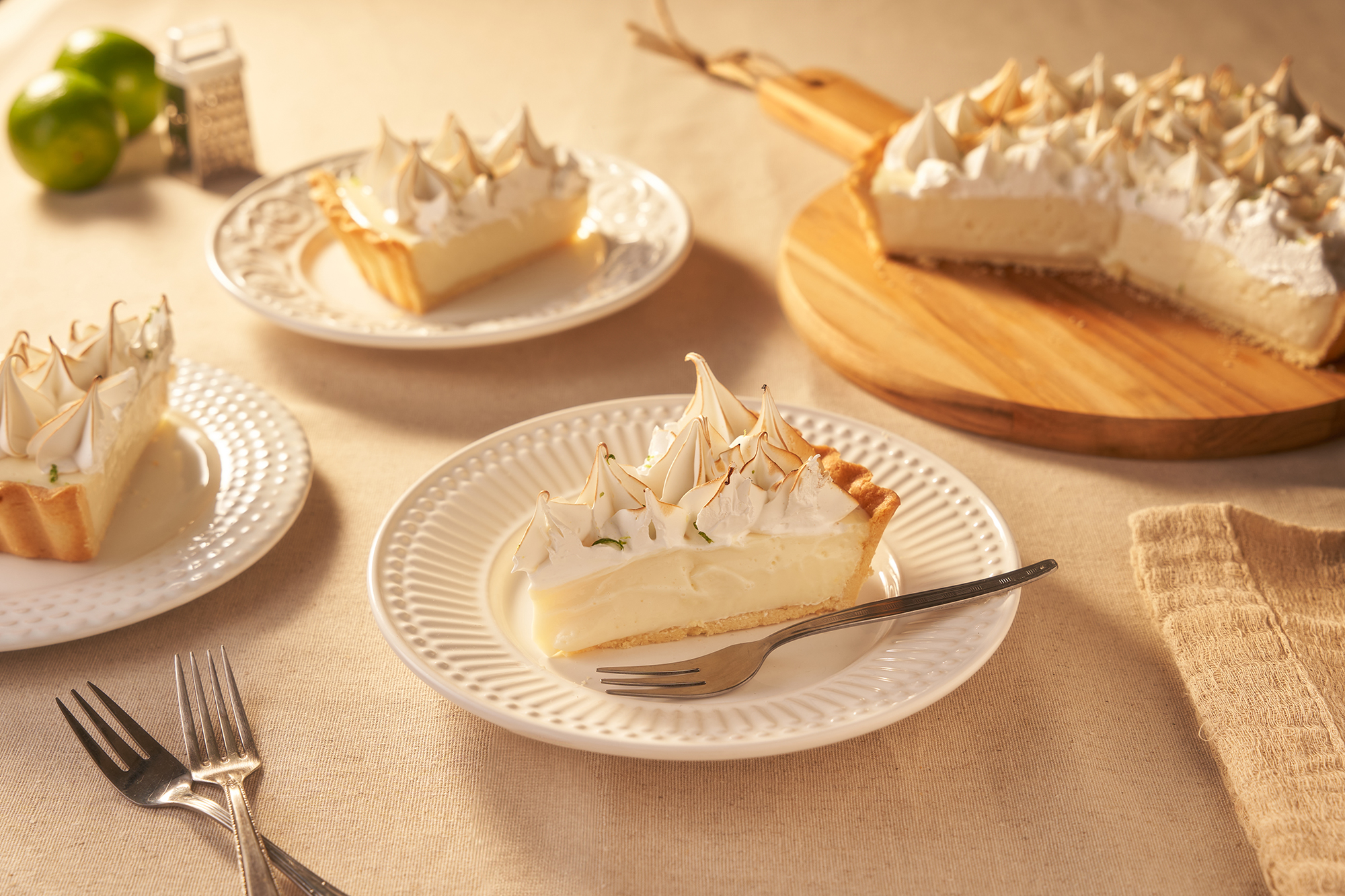 Distribua o merengue por cima da torta refrigerada, decorando como sua preferência e queime com um maçarico (opcional).